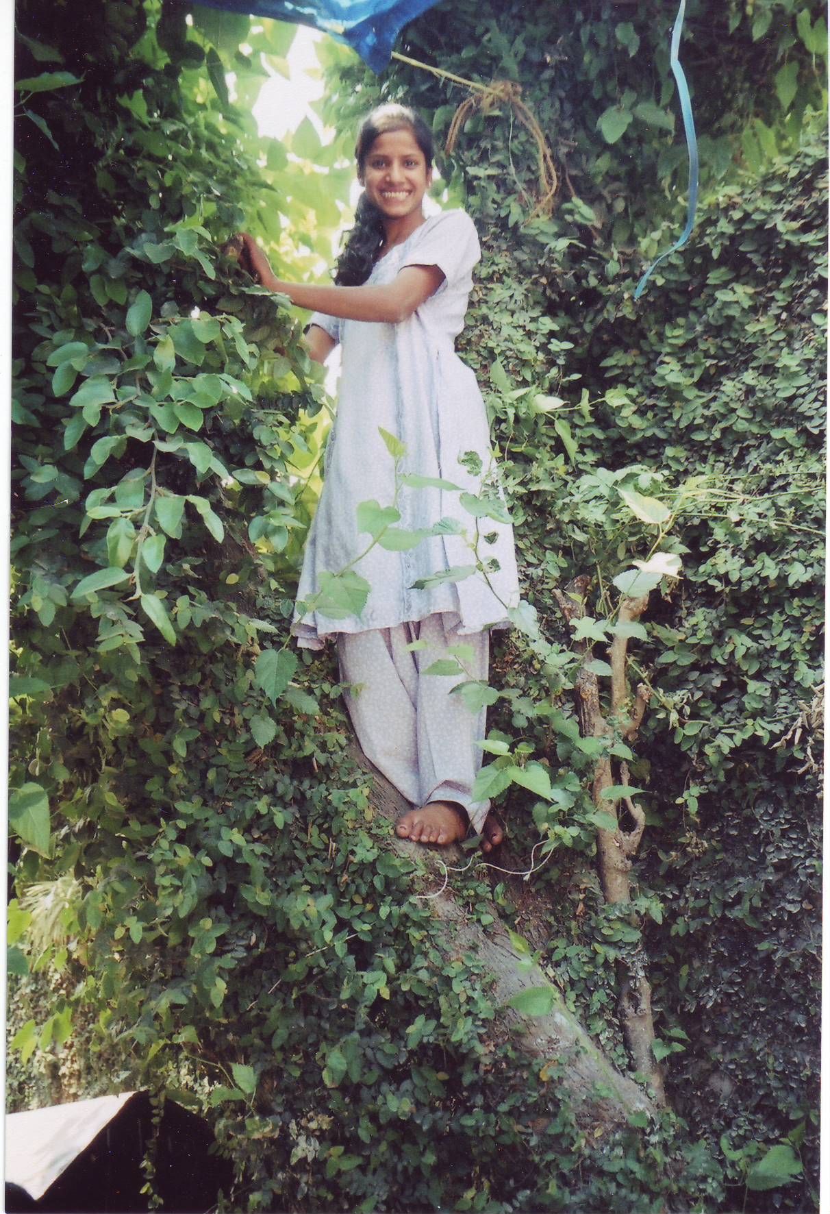 Kesari Bhattarai is picking mulberry leaves from the tree